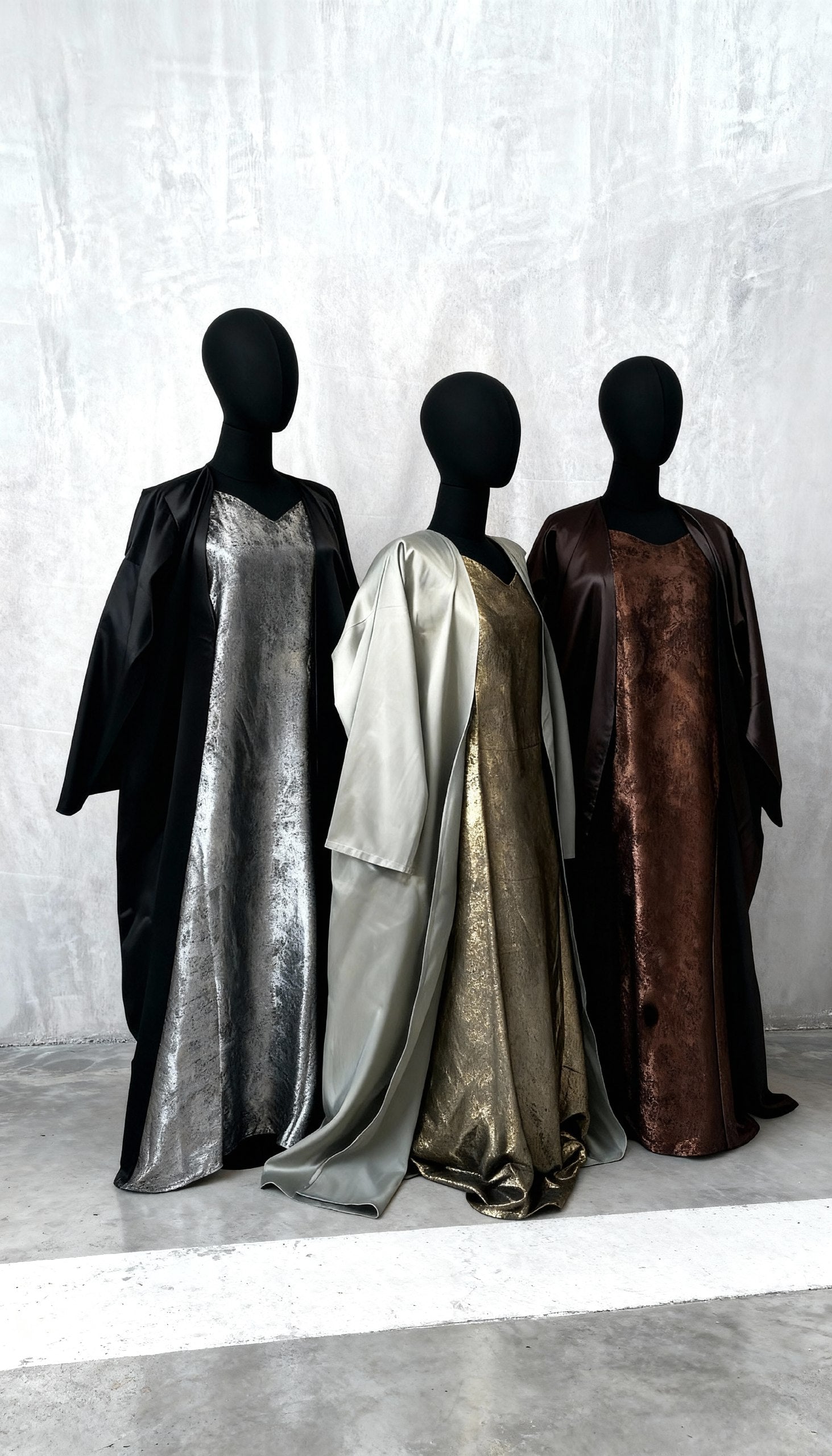 Dotée d'un kimono en satin et d'une sous abaya métallisée, le set Rita est parfait pour la saison ainsi que pour vos événements tout en étant classe et habillée de façon légiféré.
